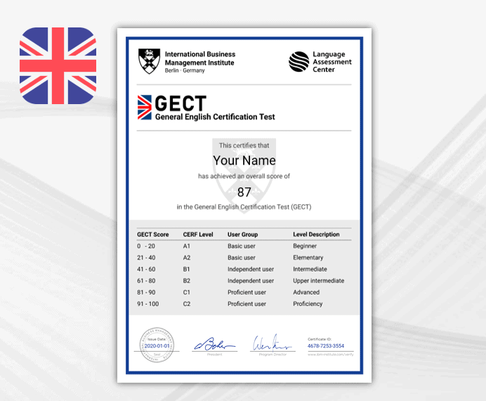 Test your English skills and set yourself apart. Add your verified GECT certificate to your application and LinkedIn profile and get more job opportunities. You will receive your results and personal certificate immediately after our popular 45-minute test.