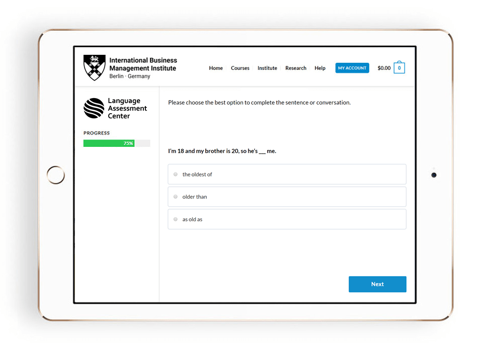 This test evaluates your English vocabulary, grammar, comprehension and communication skills using the GECT score that is aligned to the Common European Framework of Reference for Languages (CEFR).