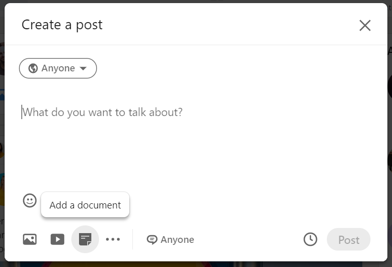 - On a computer, you will find the option to upload your certificate by selecting “Document” when writing your new post.
