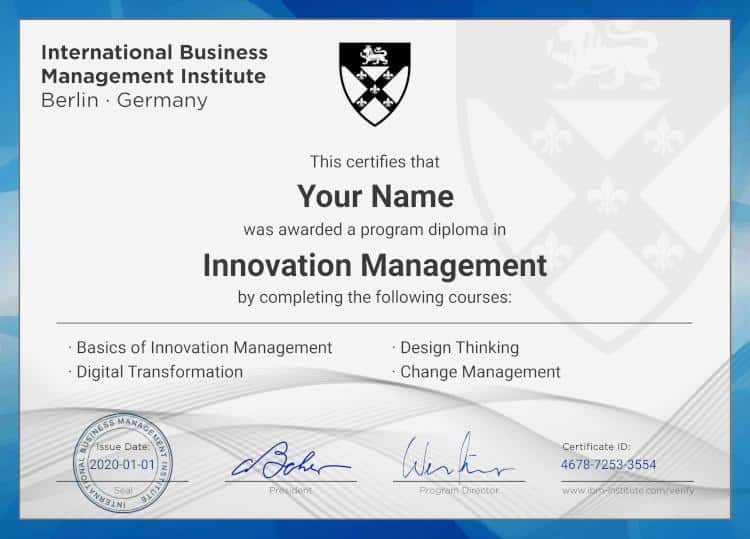 The International Business Management Institute (IBMI) holds its distance learning programs to the same high standards that are held by traditional educational institutions. This program certificate is therefore highly recognized and accepted by many employers around the world. Please note that we do not award academic titles or degrees. However, most organizations do recognize this certificate as a valid professional certificate.